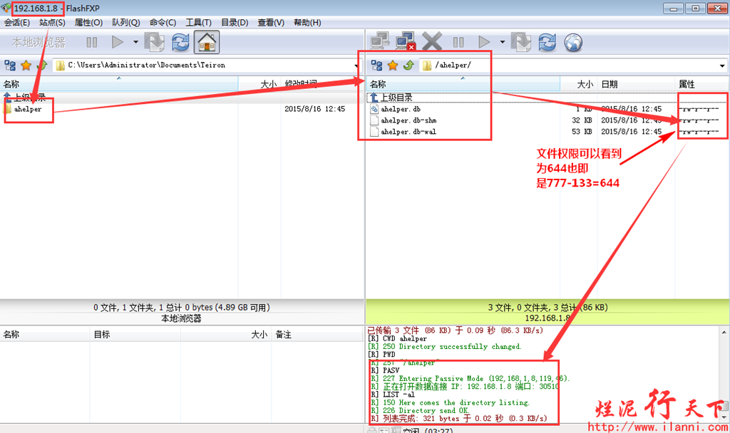 现在要求创建一个FTP账号ailanni,该账号只能登录到/www目录下,不能切换到上级目录。同时处于安全考虑还要求该账号上传的文件权限为644,即上传的文件具有可读可写权限,但是没有可执行权限。