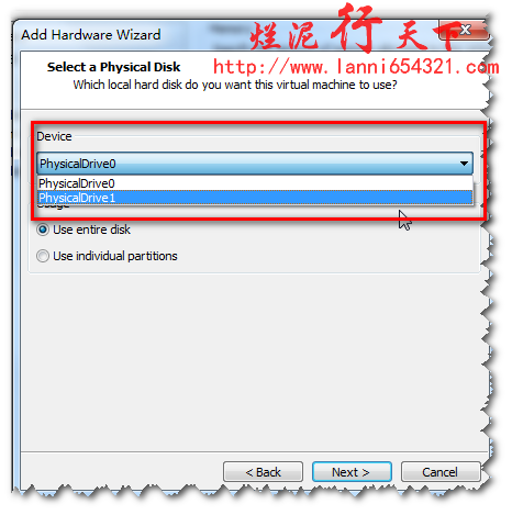 在物理磁盘中,我们下拉可以看到两个设备,这两个设备一个是本机的硬盘,另外一个就是U盘了。