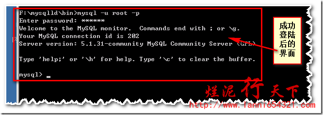 在命令行下进入c:\program files\mysql\mysql server 5.0\bin,然后输入以下命令mysql -u root –p,按回车后,会提示你输入密码。具体看如下截图: