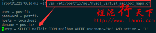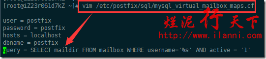 vim /etc/postfix/sql/mysql_virtual_alias_domain_mailbox_maps.cf