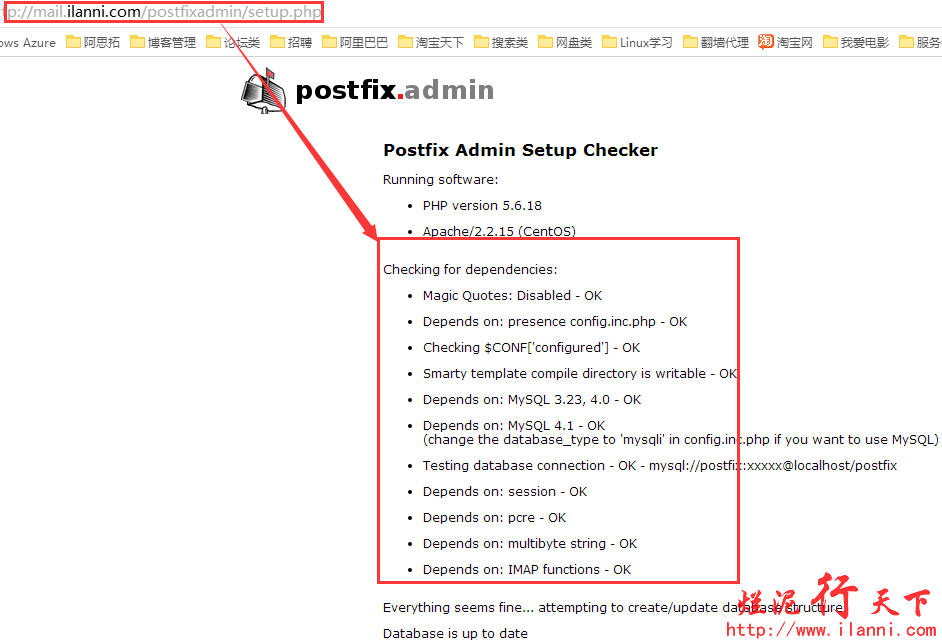 通过上图,我们可以很明显的看出postfixadmin已经正常启动,而且其所依赖的各个组件也已经正常安装和配置。