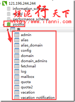 现在我们来查看下postfixadmin数据库postfix中的数据,如下: