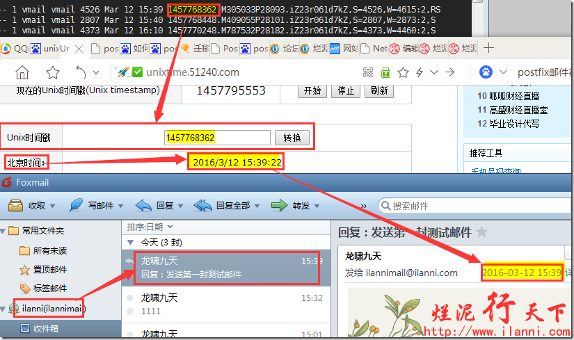 通过上图,我们可以很明显的看出ilaninmail用户已经成功的向收取外域邮箱发送过来的邮件。