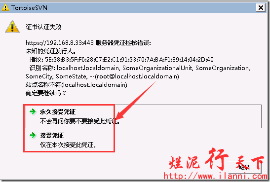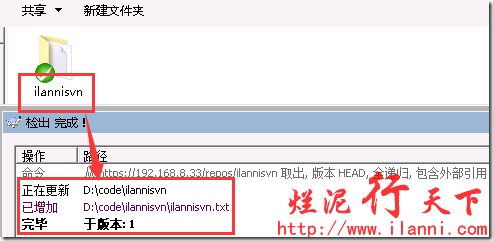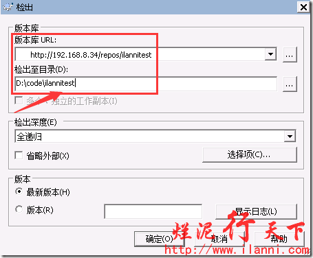 现在我们来使用svn客户端来连接svn服务器,还是以检出ilannisvn仓库为例,如下图: