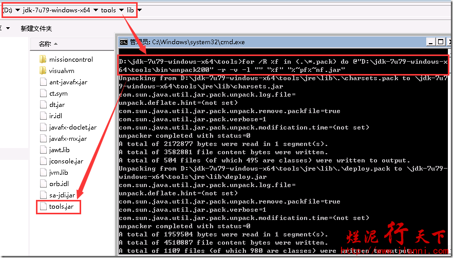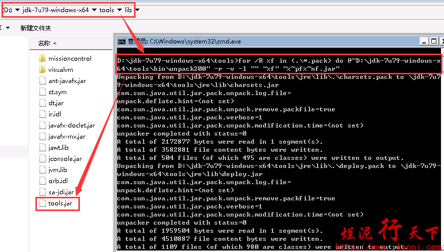 注意:D:\jdk-7u79-windows-x64\tools\bin\unpack200要根据自己的实际路径进行修改。
