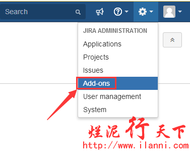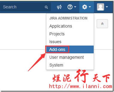 中文软件包下载完毕后,我们需要登陆到jira系统找到Add-ons–Manage add-ons–upload add-on,如下: