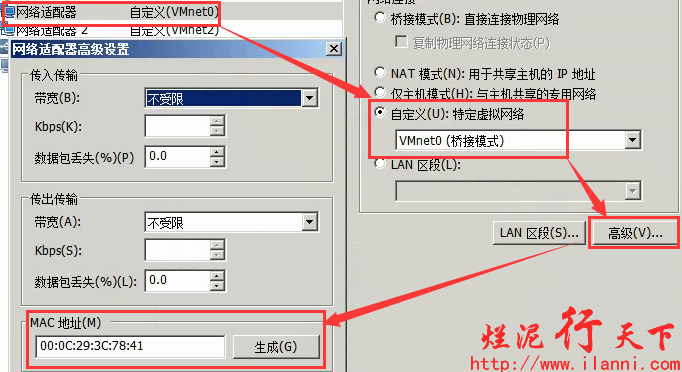 VMnet0外网网卡对应该VM网卡的MAC地址为:00:0C:29:3C:78:41。