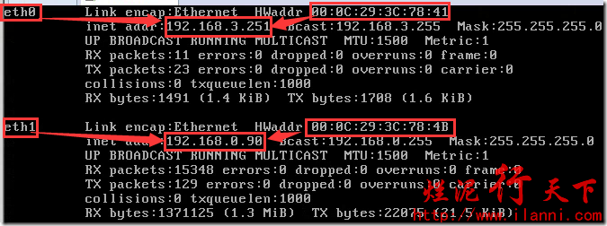 在该VM中eth0网卡配置为外网IP地址,对应VMWare的VMnet0网卡,网关是192.168.3.1。