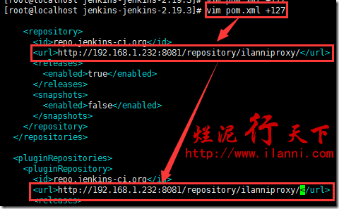 jenkins源码中,要修改nexus仓库地址,我们只需要修改源码根目录下的pom.xml文件即可。