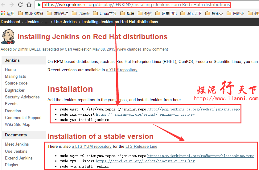 在centos和redhat上时,我们可以在jenkins官网找到其安装方法,如下: