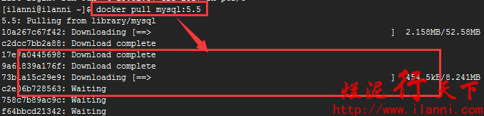 因为我现在wordpress的数据库使用的mysql5.5版本,所以我们也要下载mysql5.5的docker镜像,使用如下命令: