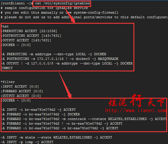因为没有启用firewalld服务,所以这个牵涉到有关iptables规则的配置。