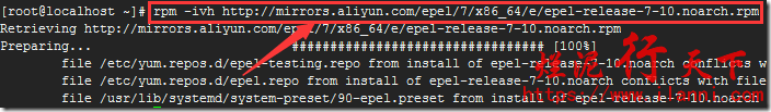 rpm -ivh http://mirrors.aliyun.com/epel/7/x86_64/Packages/e/epel-release-7-11.noarch.rpm