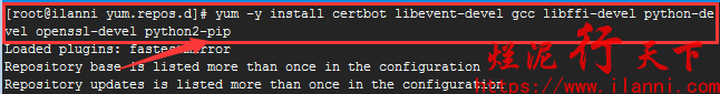 yum -y install certbot libevent-devel gcc libffi-devel python-devel openssl-devel python-pip