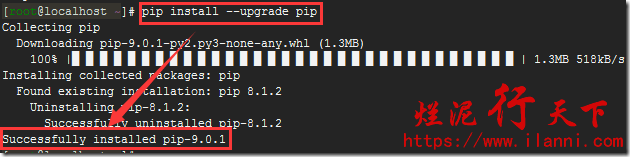 Yum方式安装完毕pip后pip的版本是8.1.2,现在我们来升级pip版本如下: