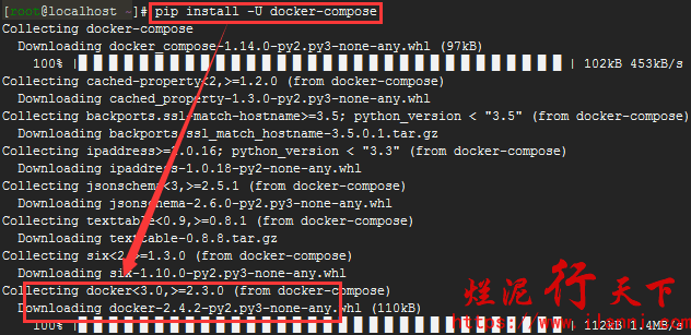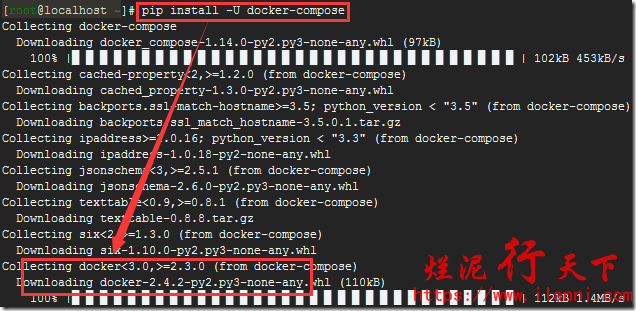 Pip版本升级完毕后,我们现在来开始安装docker-compose,使用如下命令:
