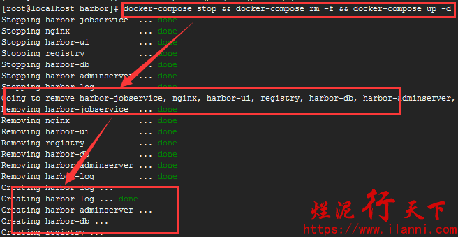 然后使用docker-compose命令,对harbor进行相关操作,如下: