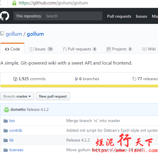 在此,我们所说的gollum是一个开源的基于git管理和markdown语法,使用ruby语言开发的wiki系统,相比较于wiki原生的标记语法,git管理和markdown语法对于程序员来说更为简洁和熟悉,协作也更加灵活。
