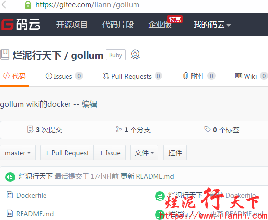 有关gollum的Dockerfile文件,可以从码云中我的仓库中查看到,地址如下: