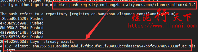 docker push registry.cn-hangzhou.aliyuncs.com/ilanni/gollum:4.1.2