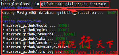 gitlab提供的备份命令为gitlab-rake,备份命令使用如下;