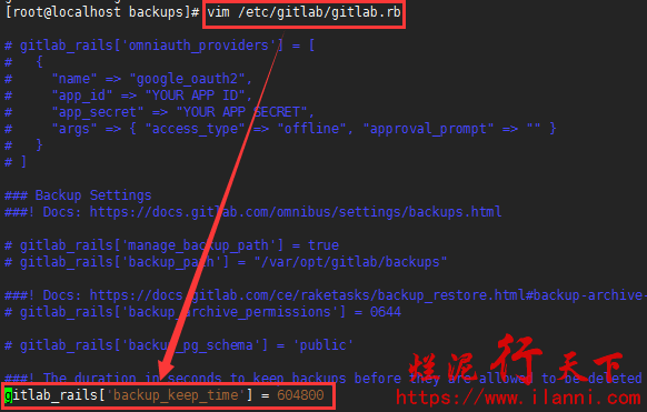 此时我们就要删除部分旧的备份文件,gitlab也提供了删除旧的备份文件功能。该功能在gitlab的配置文件中,进行配置即可。