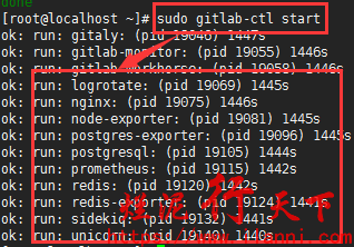 恢复完毕以后,我们现在来启动gitlab,使用以下命令: