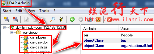 这个我们可以通过ldapadmin或者phpldapadmin等工具来进行查看。在这我们使用ldapadmin工具进行查看,如下: