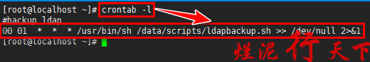 00 01 * * * root /usr/bin/sh /data/scripts/ldapbackup.sh >> /dev/null 2>&1