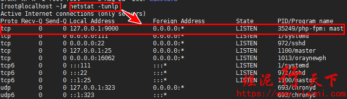 通过上图,我们可以很明显的看出php-fpm监听的是9000端口,这个和源码安装默认的监听端口是一样的,这个也可以在我以前的文章中查看到。