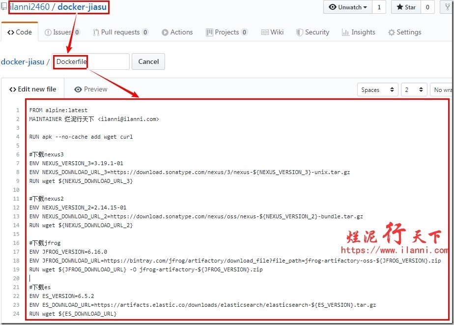 第一、在github上新建一个git仓库,在该git仓库中编写Dockefile文件。