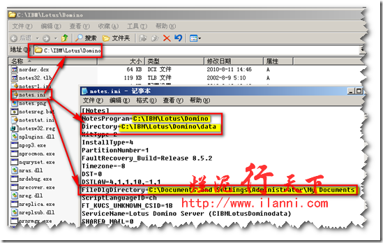 第三步、找到data文件夹下的admin.id及cert.id并复制到桌面上。等会在配置Domino服务器时,我们需要这两个文件。断开旧服务器的网络连接,以下所有的操作都是在新服务器上进行。打开新服务器Domino安装目录的notes.ini文件。查看器相应的目录是否和当前的Domino安装目录一致。如果不一致,我们需要进行修改。如下图: