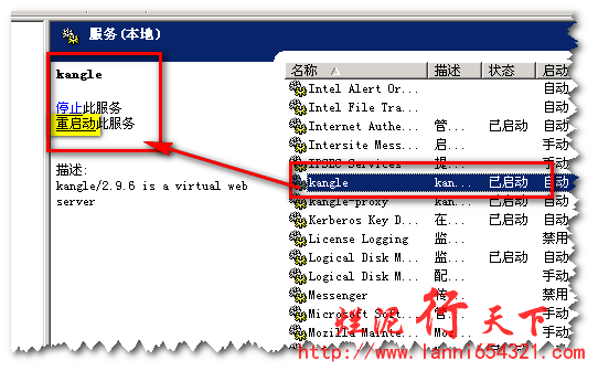 把以上结果保存一下,然后重启一下kangle的服务即可。如下图: