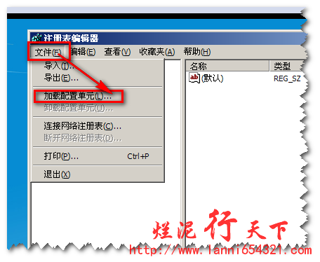 现在我们选择 HKEY_LOCAL_MACHINE 或者 HKEY_USERS 或者其他的也是可以的,然后选择“文件” →“加载配置单元”: