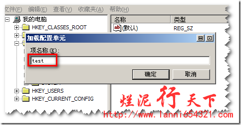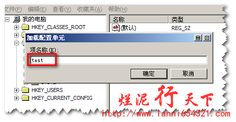 以上完成后,我们会在注册表下看到一个test项,如下图: