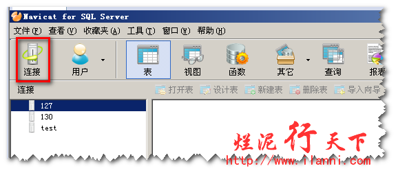 启动Navicat for SQL Server,点击“连接”,如下图示: