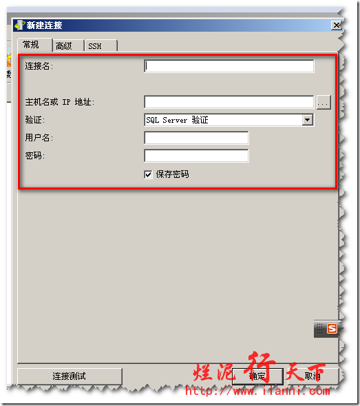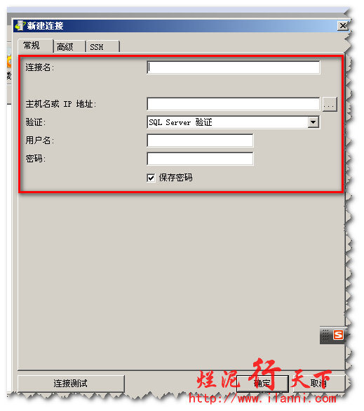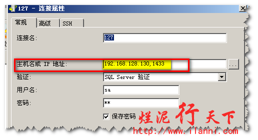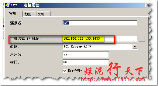 在弹出的界面中,输入相关的信息。其中“主机名”中要注意了。我们可以填写:IP,端口号。的形式也可以直接填写IP。其中IP加端口的是SQLServer修改了端口号。如下图示: