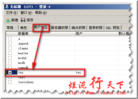 在“用户对应”中是要设置用户与数据库的对应关系,及哪些数据库是和该用户是关联的。如下图示: