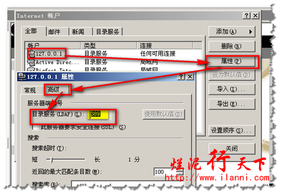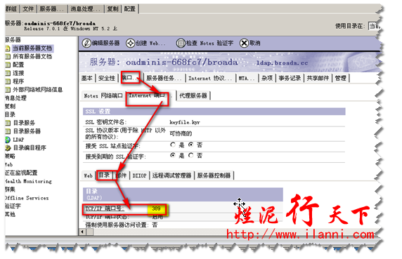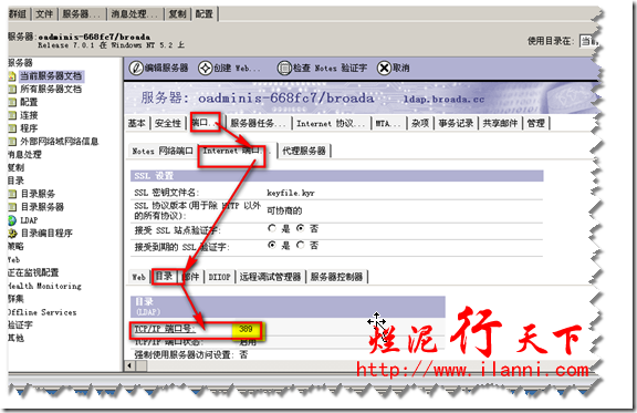 首先需要注意的是Domino的LDAP服务使用的端口号是389,如下图: