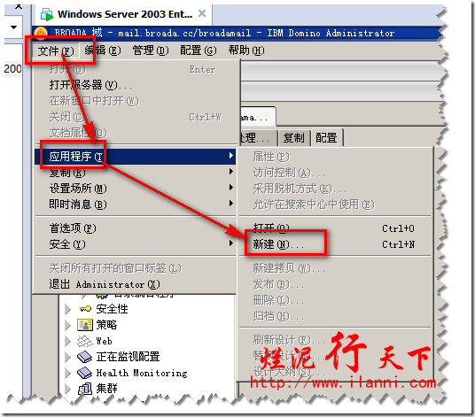 接下来,我们要建立相应的数据库。打开“文件”—“应用程序”—“新建”,如下图: