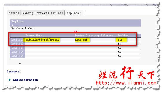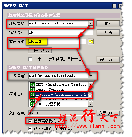 上图中黄色部分标记出来的“文件名:AD.nsf”一定要记住。等下配置的时候,我们会使用到的。
