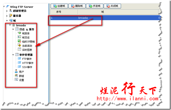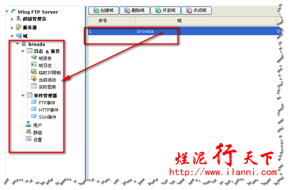 WingFTP安装完毕登录后的界面,如上图。我们现在要新一个域,如下: