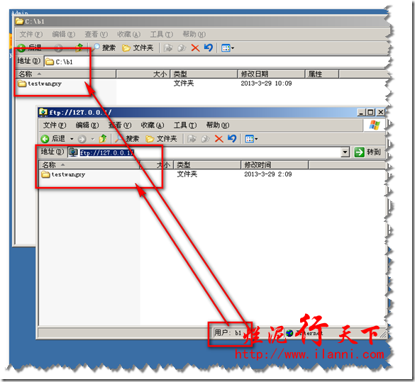 通过下图我们可以看到,用户b1已经能正常登陆FTP。也就说明FTP现在可以完全正常工作了。