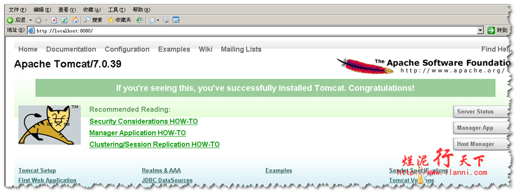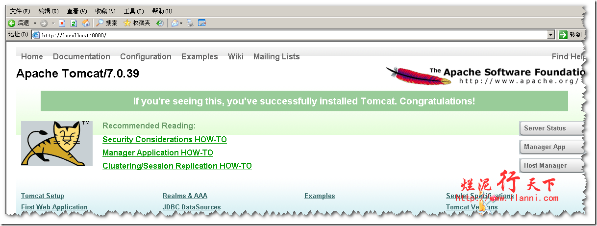 现在登陆Tomcat,在浏览器中输入:http://localhost:8080