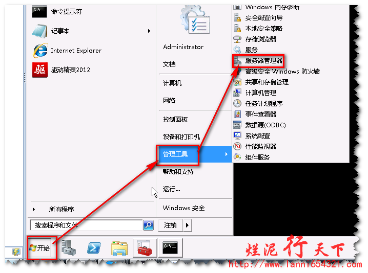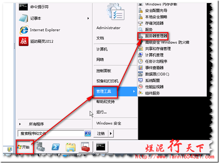 我们首先需要打开“开始”—“管理工具”—“服务器管理器”