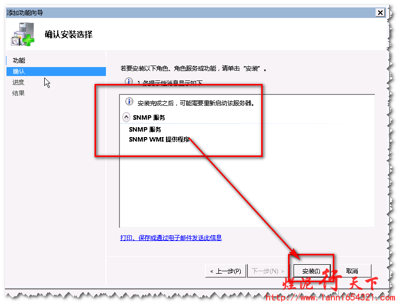 既然是使用SNMP协议进行,那我们就要安装该协议,windows server 2008系统上安装SNMP协议和windows server 2003是不同的。