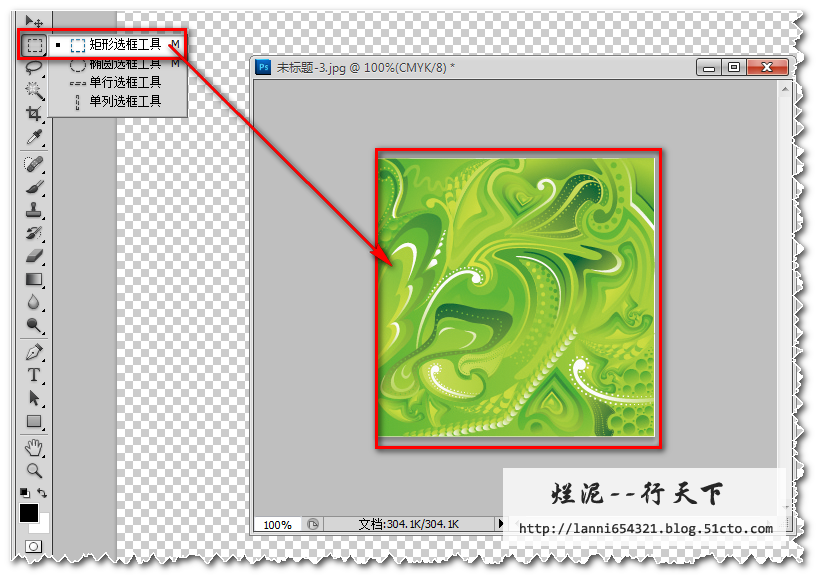 打开后利用选择工具选择图片的一部分,或者全部都可以,如图: