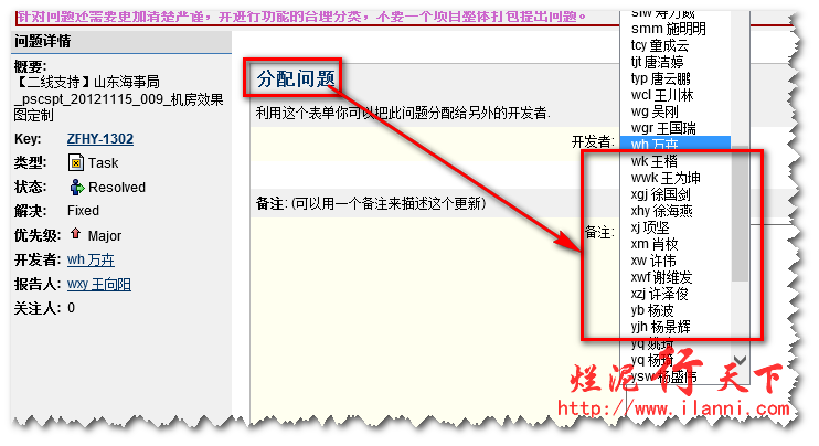 如果想这个JIRA分配另外一个人,我们可以执行“分配问题”选项。如下图: