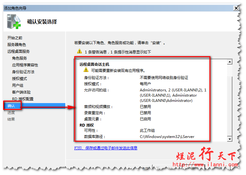 以上配置如果没有问题的话,就可以安装远程桌面服务。注意此安装过程,需要重启服务器才能进行完全安装。