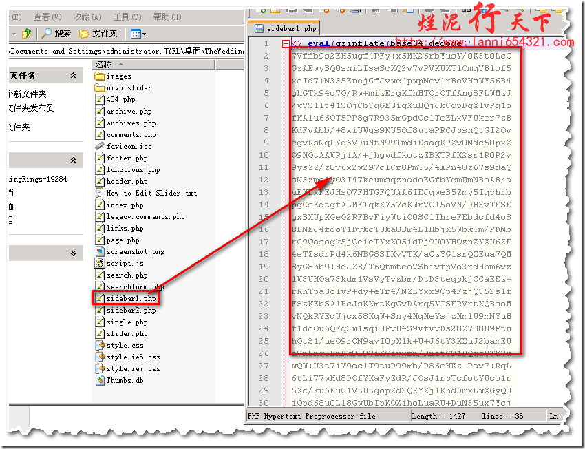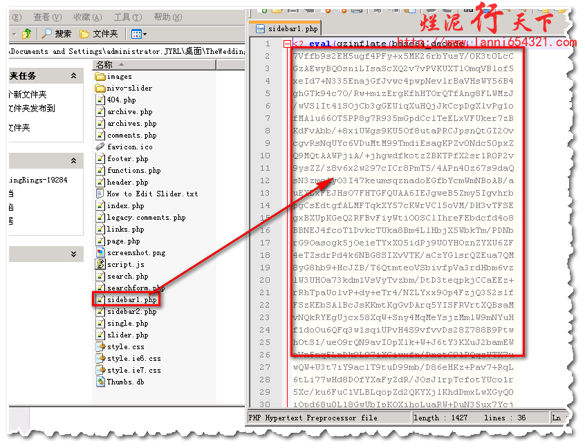 然后把这个decoded.php修改为sidebar1.php替换原文件,就可以了。